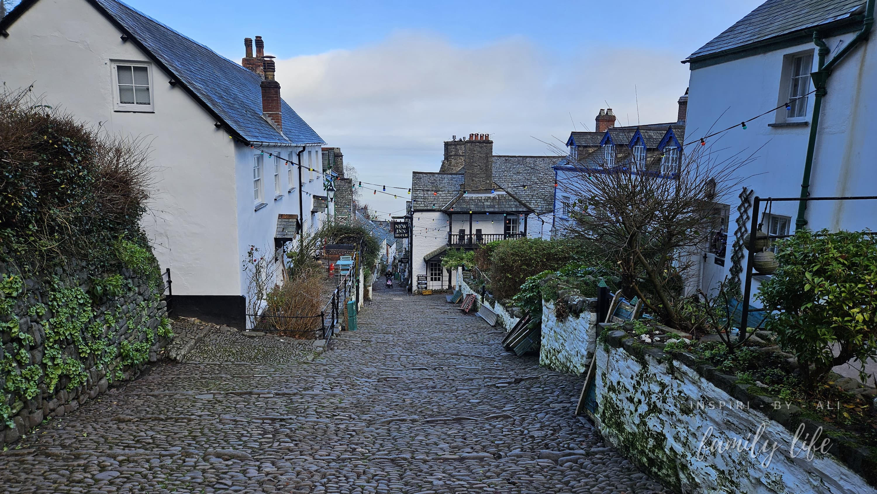 Świąteczny klimat w Clovelly a w oddali Ocean Atlantycki