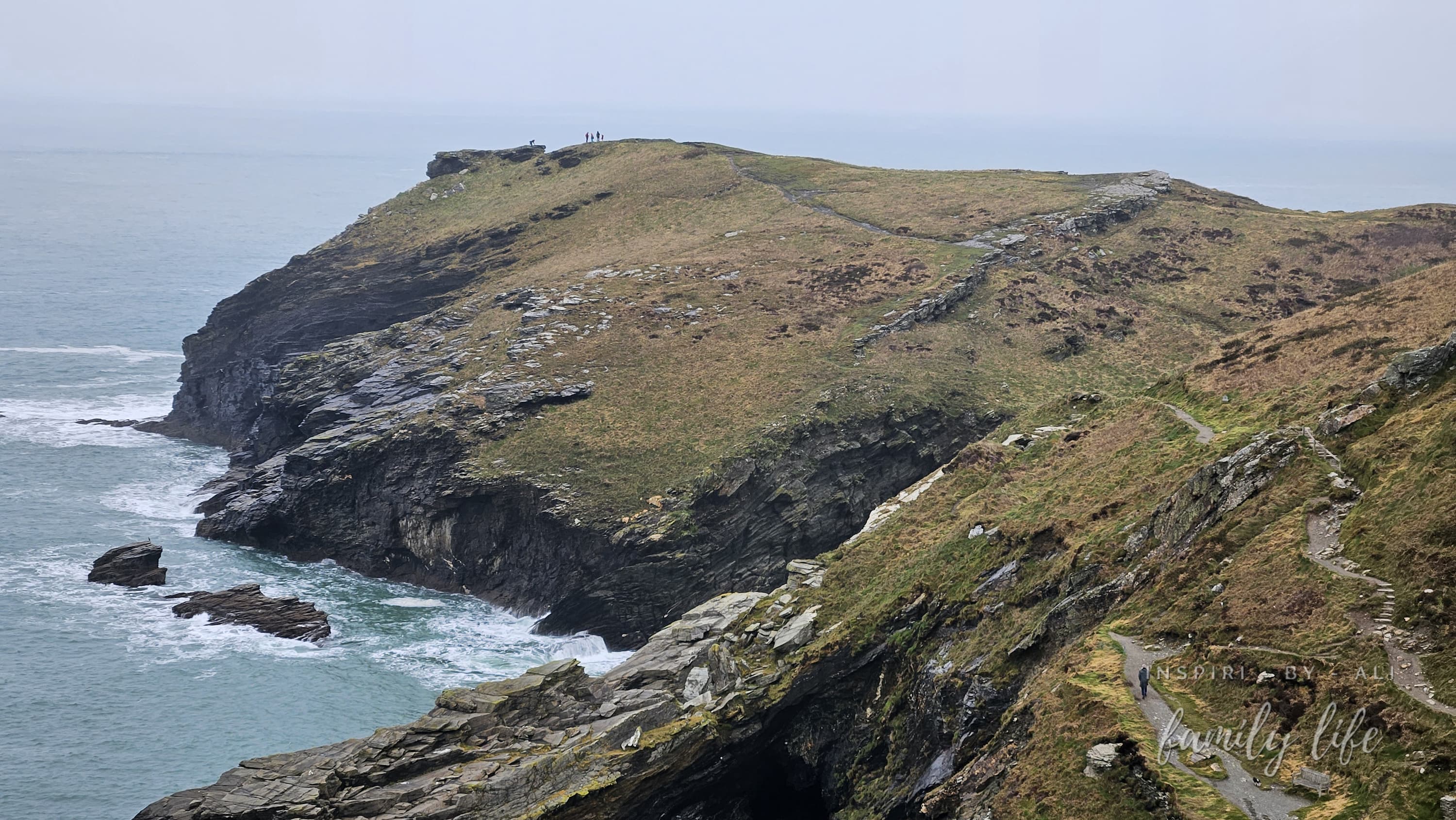 Tintagel Castle - średniowieczny zamek legendarnego króla Artura nad Oceanem Atlantyckim na małej wysepce Tintagel, która połączona jest z lądem stalowym mostem dla pieszych. I choć niestety z samego zamku nie pozostało zbyt wiele i słowo ruiny to zbyt wiele powiedziane, to rozległy teren spacerowy z niewiarygodnymi widokami broni się sam za siebie. Choć, kolejna uwaga, mógłby być lepiej zabezpieczony przed przepaściami;/ Gwarantowane widoki na ocean, Hotel Camelot i Jaskinię Merlina, którą można też zwiedzić. My trafiliśmy na dosyć pochmurne późne popołudnie, toteż widoczność była taka sobie, a i tak obszar zwiedzania zrobił na nas wrażenie. W sezonie turystycznym warto kupić wcześniej bilet online na zwiedzanie Tintagel Castle.